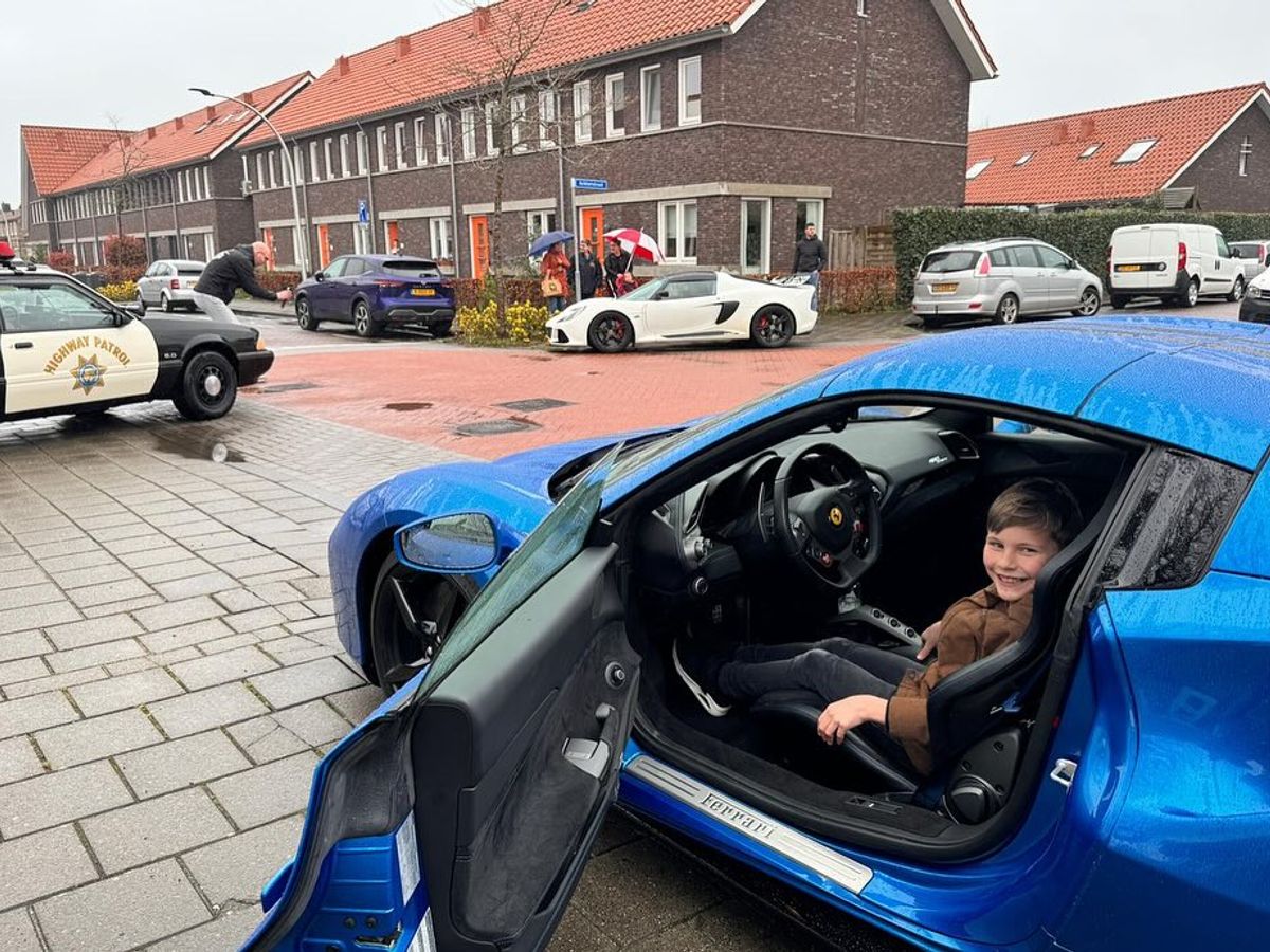 Want de echte aandacht ging gister dan ook naar de 2 kleine mantelzorgers, de broertjes, zij zijn helemaal wild van sportauto’s! De broertjes telden letterlijk de dagen en uren af voor het ritje. Spannend moment….het regent, en nu?! Gaat het nog wel door! Het ging door! Na even wachten in de regen kwamen de auto’s aanrijden. Naast auto’s voor de broertjes, hadden we ook voor hun moeder een auto geregeld.